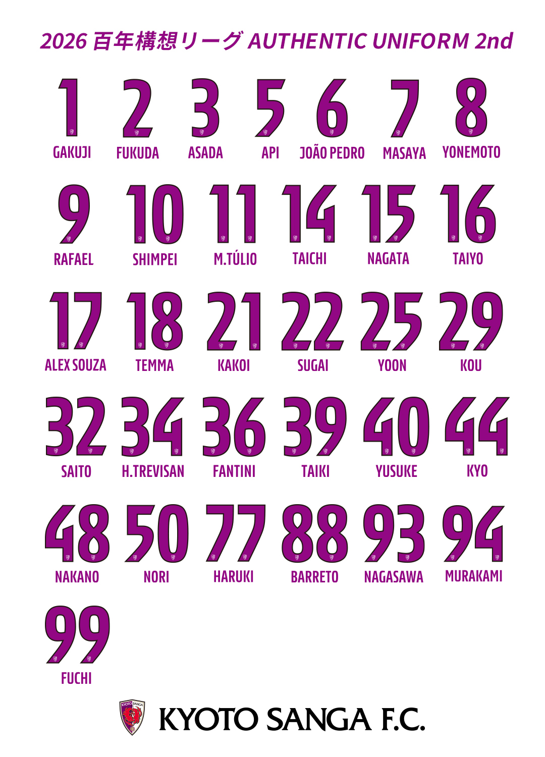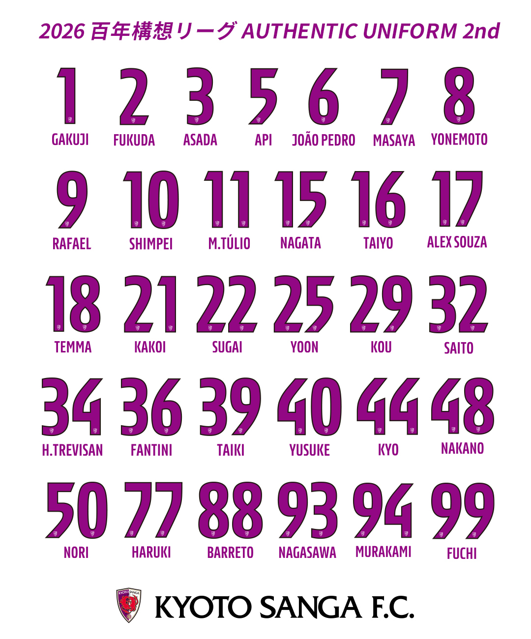 白をベースに1stユニフォーム同様、“クラブカラーの紫”と“鳳凰の赤”をサイドパネルに採用。