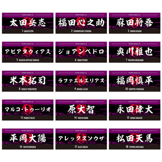 クラブカラーの紫と黒に力強い書体の選手名が映えるフェイスタオルが発売!!